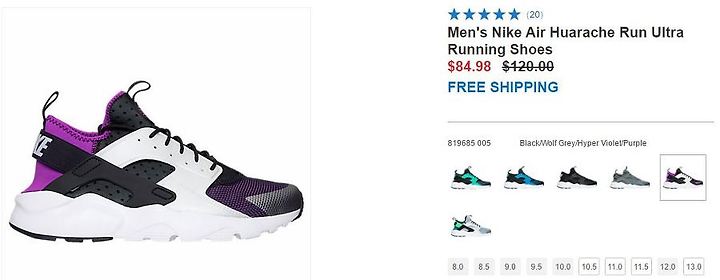 Finish Line 에서 나이키 허라취(Nike Huarache) 신발을 세일하고 있습니다.