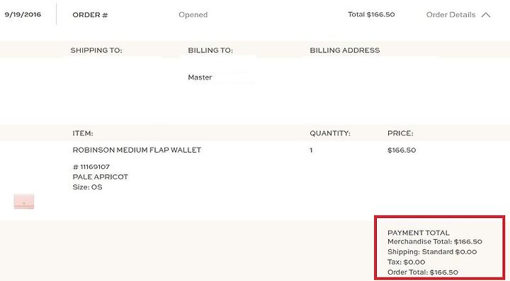 $185 지갑이 프로모션 코드를 입력해서 $166.50이 되었습니다 ㅎㅎ